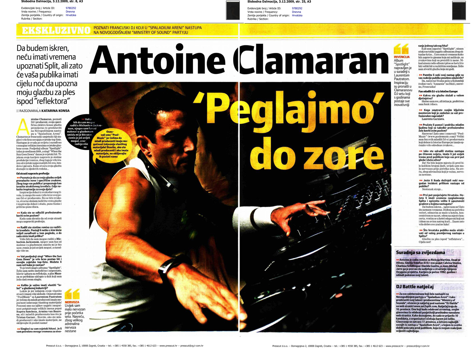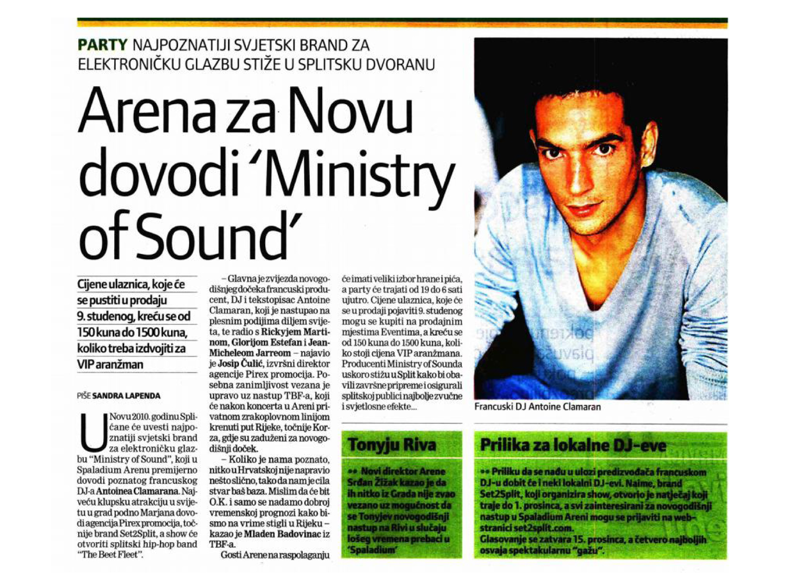U suradnji sa Pleon Media koordinirali smo i dogovarali medijska pokroviteljstva u zemlji i regiji, vodili novinare na manifestacije u Pariz i London odakle su se kreirale reportaže za veliki Novogodišnji party u kojem je glavnu ulogu imao svjetski poznati klupski brend Ministry of Sound i tada aktualni electro-house producent Antoine Clamaran.
